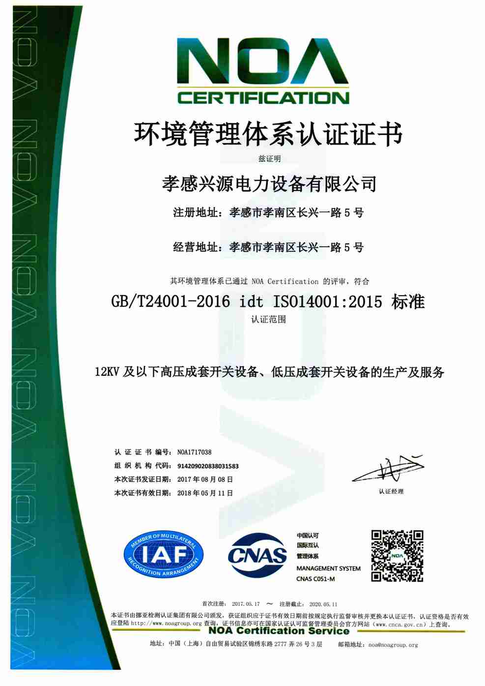 環(huán)境管理體系證書
