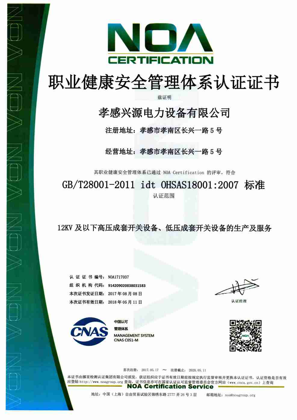 宜昌昌耀電力成套設(shè)備有限公司AAA證書